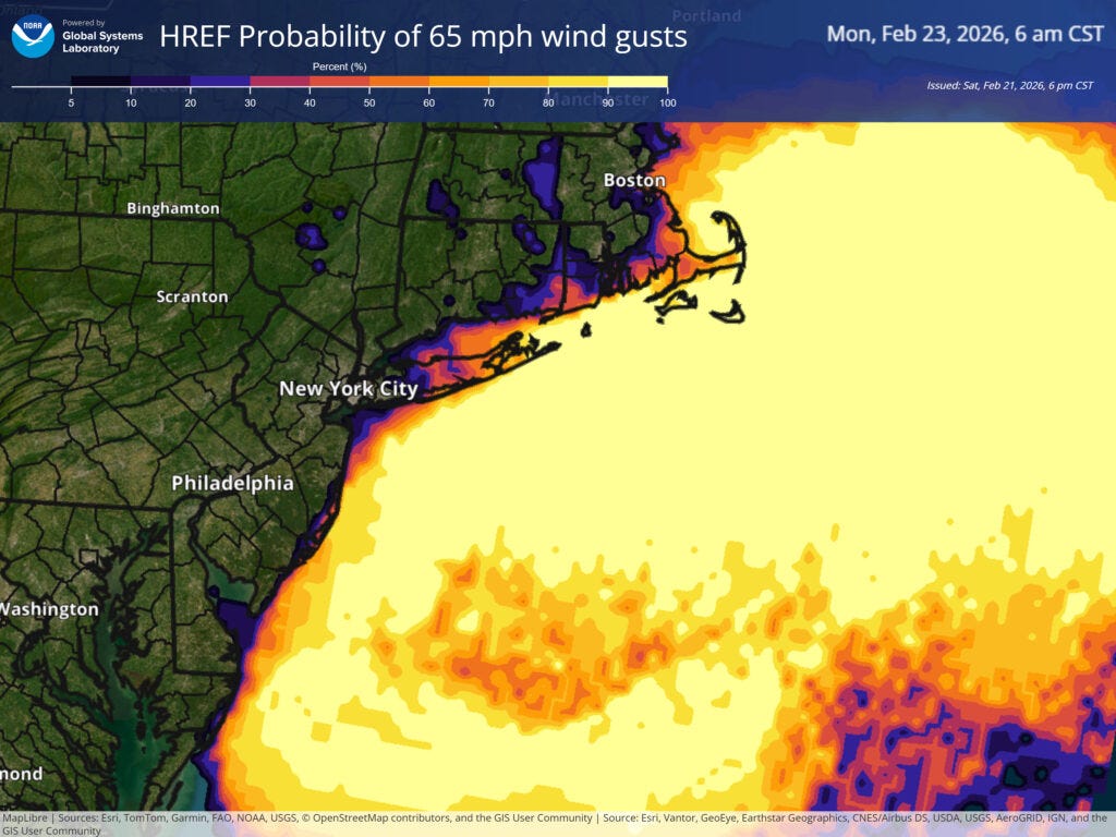 Those probabilities are quite high. These winds may locally cause some damage, particularly on the immediate coastline, with numerous power outages possible near the coast as well.