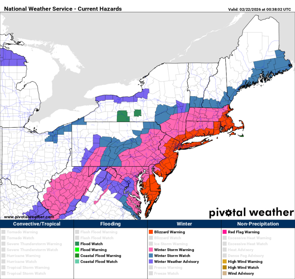 It now appears that the one-foot line will extend to the north of Boston out through Poughkeepsie and south into Allentown and possibly into much of Delaware now. Blizzard Warnings have also been expanded through the day today, now covering a huge area from Boston through the length of Delmarva.