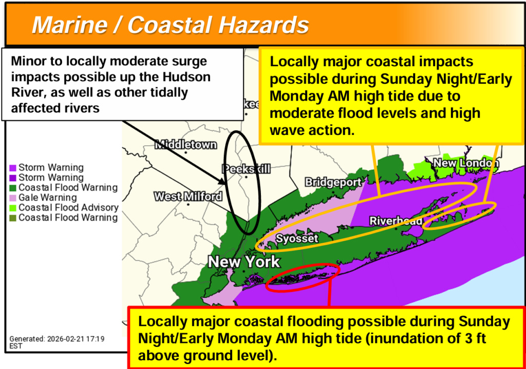 The NWS in New York City is highlighting the potential for significant coastal flooding for portions of southwest Long Island in particular.